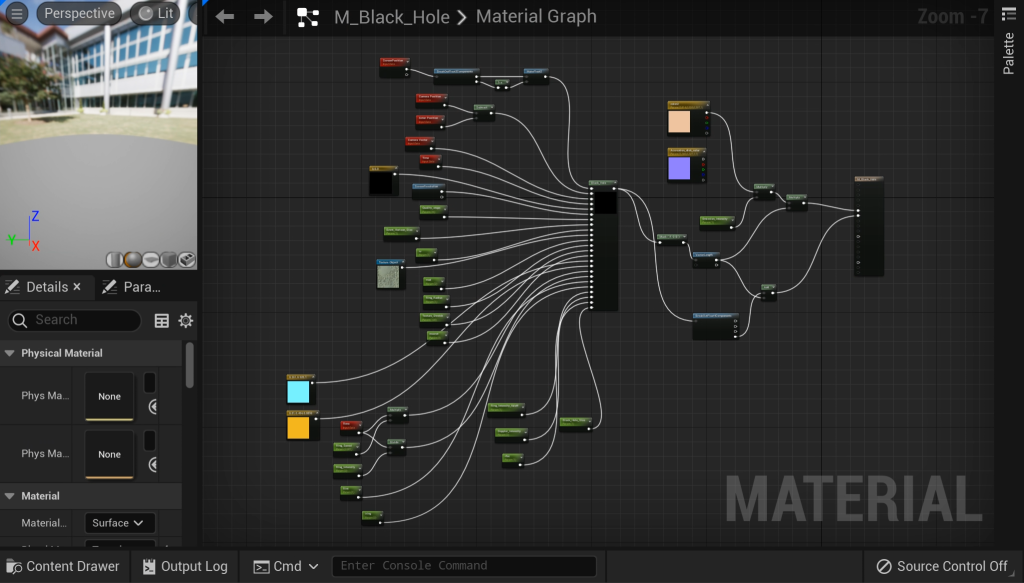 In UE5, my black hole is created by various nodes and function equations, so I need to check and debug these data to achieve more effects, such as the rotation of the black hole aperture, density, flow speed, frequency, light Halo, color, etc. After constant testing and rendering, as well as looking at reference images, I finally decided on the look I wanted.